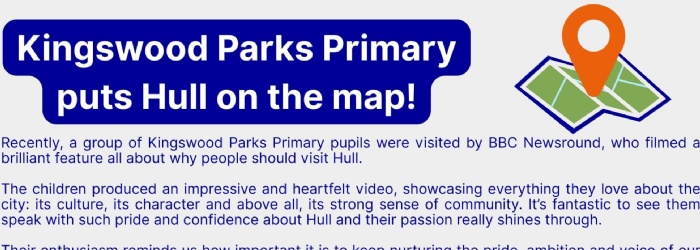Kingswood Parks Primary puts Hull on the map!